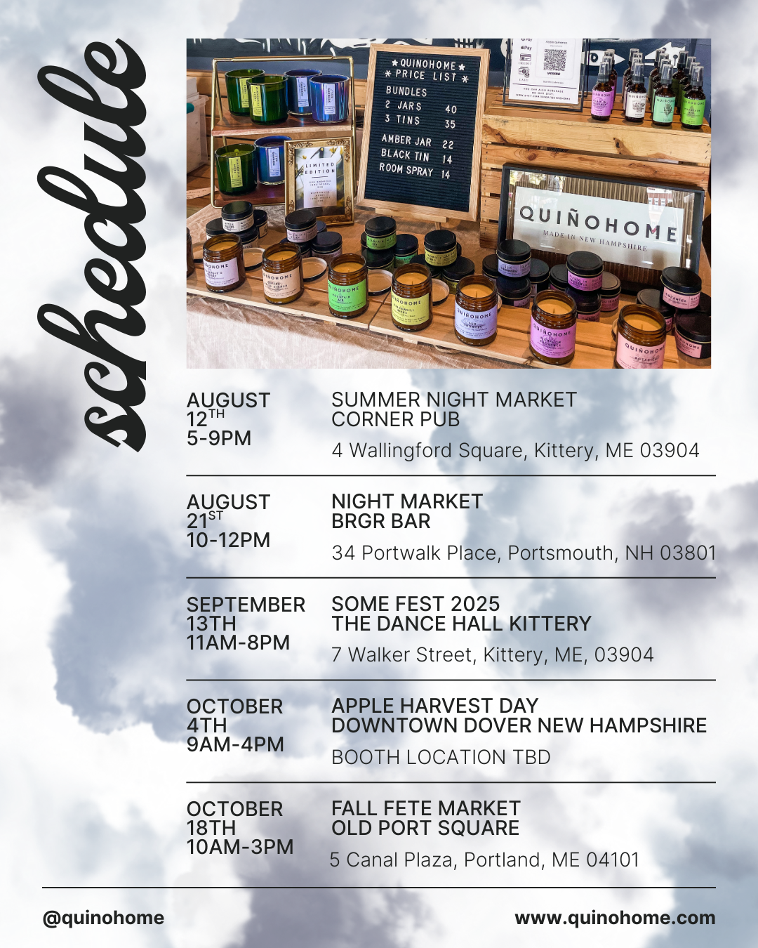Throughout the year, we pop up at local markets and community events across New England. It’s the best way to explore our full collection, discover seasonal releases before they sell out, and connect with the story behind each scent. Whether you’re stopping by to stock up on favorites or just to say hello, we love meeting you face-to-face.